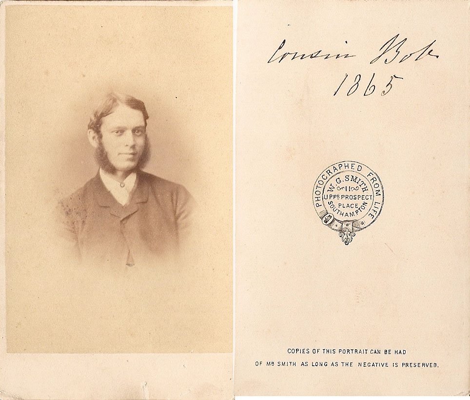 Robert BRIDGER [Parents] [scrapbook] was born on 11 Oct 1840 in Chilcombe Hampshire England. He died in 1902 in Protestant Cemetery Of Montevideo Uruguay. Robert married Aminta (Arminta) Ann CASH on 20 Jan 1874 in Mercedes, Buenos Aires D, Argentina. [Notes] |